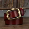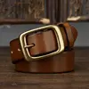 The belt features full-grain cowskin leather known for its strength and durability. With a width of approximately 1.3 inches, it offers a balanced look that feels sturdy without being bulky. The copper buckle measures about 1.77 inches wide and 2.36 inches long, creating a strong visual statement while remaining comfortable for daily wear. The solid pattern and clean finish make this belt a versatile essential in any man’s wardrobe.