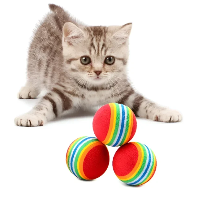 Crafted from high-quality rubber, these balls are wear-resistant and bite-resistant, making them ideal for both gentle and energetic cats. The bright rainbow stripes catch your cat’s attention instantly, while the soft yet bouncy texture makes each interaction exciting and unpredictable.
