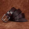 Made from top-grain cowhide, this belt maintains its rich feel and long-lasting performance. The alloy pin buckle adds a bold touch while ensuring a secure hold throughout the day. Available in classic masculine shades—Black, Coffee, Reddish Brown, and Khaki—it complements any wardrobe with ease.