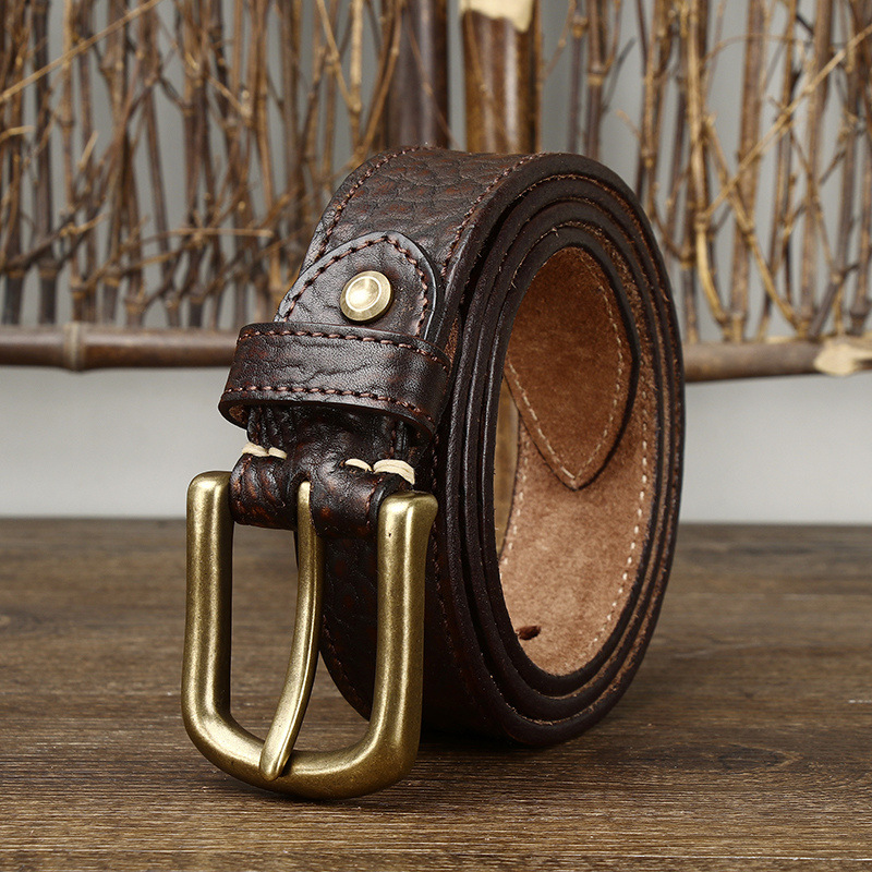 Step up your everyday style with this Genuine Cowhide Leather Belt — a rugged yet refined accessory made for men who appreciate quality and durability. Handcrafted from the first layer of pure cowhide, this 1.5-inch (3.8 cm) wide belt delivers strength, character, and comfort in every wear. Its heavy-duty solid brass buckle gives it a distinctive vintage charm while ensuring it stays secure through years of use. Perfectly designed for jeans and casual outfits, this belt blends classic cowboy spirit with a modern masculine edge.