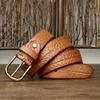 Give your everyday look a bold upgrade with this retro embossed cowboy leather belt. Made from genuine cowskin leather and crafted with a rugged copper pin buckle, this belt delivers a perfect blend of durability, comfort, and timeless style. Its 1.5 in width fits most jean loops, making it an ideal choice for casual wear, outdoor activities, or adding a vintage touch to your daily outfit.