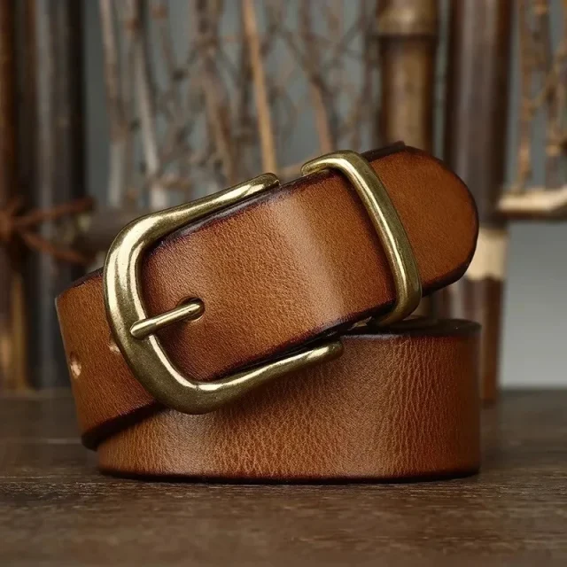 This men’s genuine leather belt isn’t just about looks; it’s about making a long-lasting impression. Its high-quality cowhide leather ensures both style and endurance, while the luxurious copper buckle adds sophistication to your look. Whether you’re pairing it with jeans for a vintage touch or with dress pants for a polished look, this belt enhances your outfit effortlessly. The sturdy design means it will stay looking sharp, no matter the wear, while its timeless style means you’ll wear it for years to come.