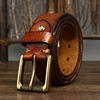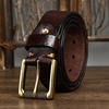 What makes this product special is its handcrafted finish. Each belt is purely handmade using time-tested tanning and dyeing techniques, resulting in a rich vintage style with unique character. The solid brass pin buckle not only adds a touch of luxury but also ensures long-lasting fastening you can rely on. Available in versatile colors like black, brown, khaki, and red brown, this belt is designed to suit your personal style and help you stand out effortlessly.