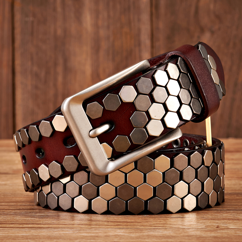 Elevate your fashion game with this 3.8cm Men’s Rivet Studded Punk Belt. The genuine cowhide leather construction ensures long-lasting wear, while the rivet studded details give it a unique, edgy touch. This belt is designed for the modern man who wants to stand out, making it perfect for everything from everyday casual wear to more daring punk-inspired outfits. The durable pin buckle ensures a secure fit, so you can wear it confidently wherever you go.