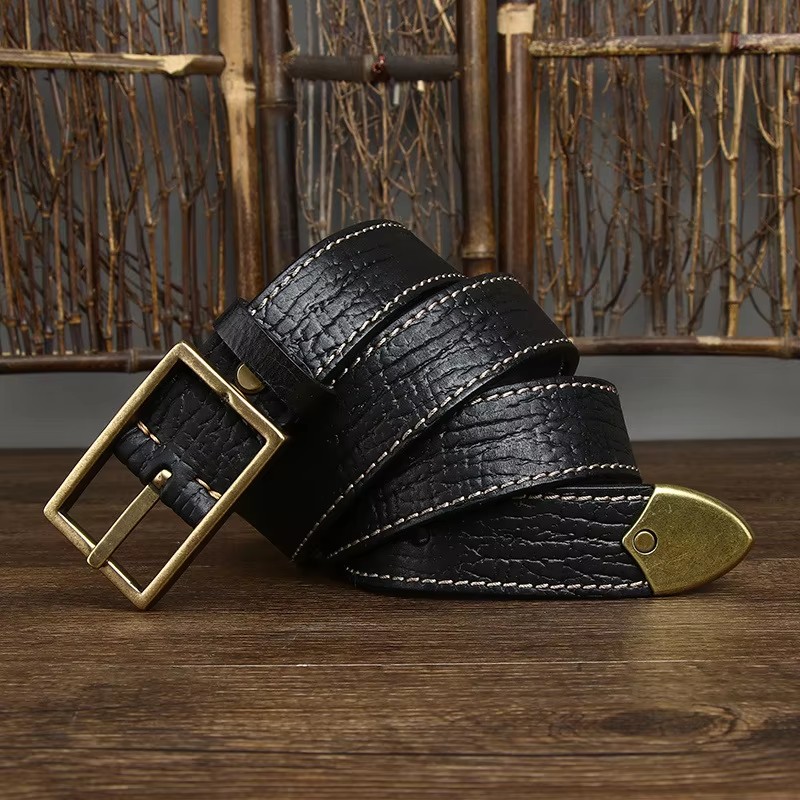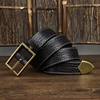 Luxury Retro Thick Genuine Leather Belt for Men – Designer Brass Buckle
