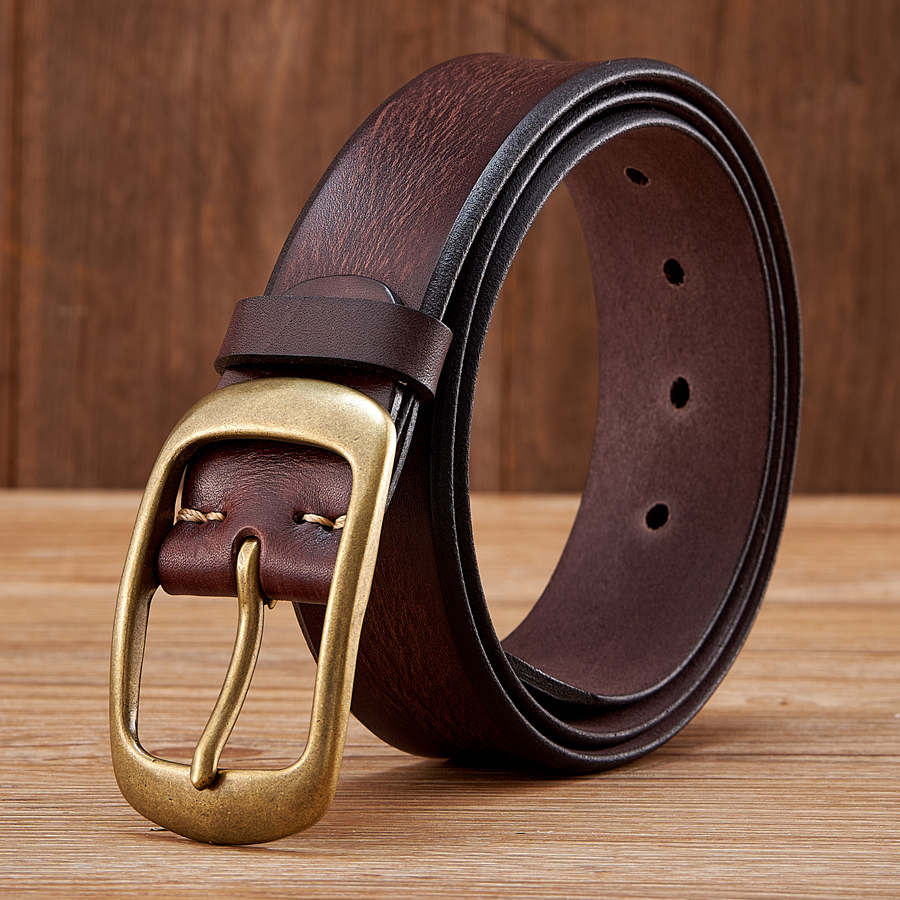 This belt features a vintage-inspired strap paired with a solid brass pin buckle that adds a touch of refined, masculine charm. The natural grain of genuine cowskin enhances its rich texture, while the heavy-duty construction ensures it stands up to years of use. Designed for adults who value quality and simplicity, it’s ideal for jeans, rugged workwear, or dressing up a casual outfit with a polished finish.