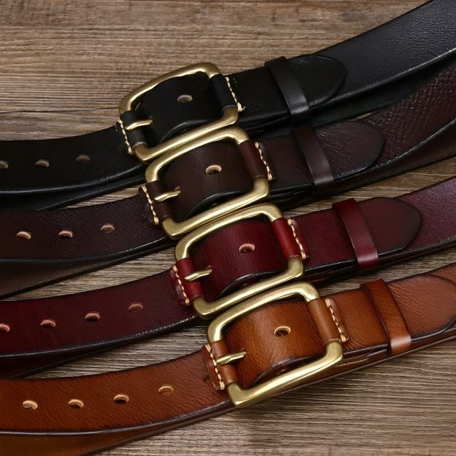 Each belt is made from pure full-grain leather, known for its natural texture and lasting resilience. The surface is smooth and supple to the touch yet built to withstand years of wear without losing shape or character. Available in classic shades of black, red-brown, brown, and khaki, this belt complements both casual and business-casual looks. Its pin buckle fastening ensures a secure, adjustable fit while adding a timeless detail to your outfit.