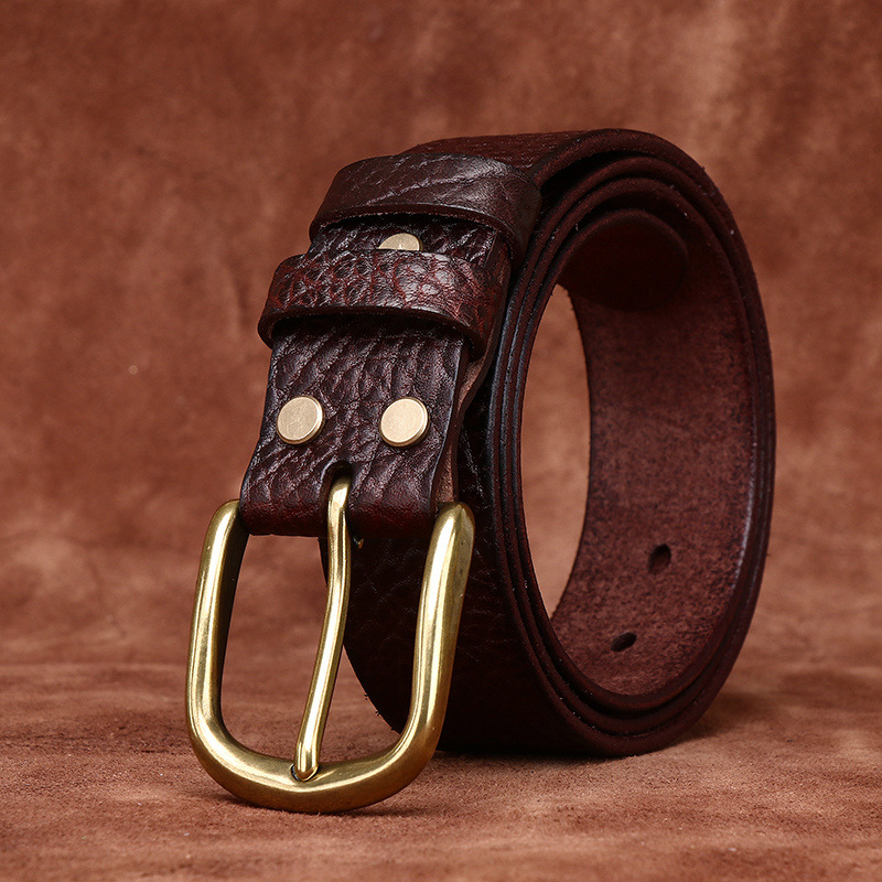 Step up your everyday style with this premium genuine cowhide leather belt crafted for men who value both durability and elegance. Designed with a solid brass buckle and a thick 1.5-inch (3.8 cm) width, this belt offers the perfect combination of rugged charm and refined sophistication. Whether you’re dressing up for business or going casual in jeans, this belt makes every outfit look effortlessly sharp.