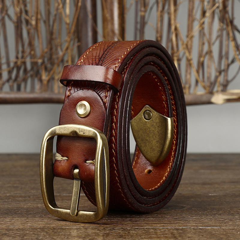 Luxury Genuine Leather Jeans Belt for Men – 3.8CM Cowhide with Copper Buckle