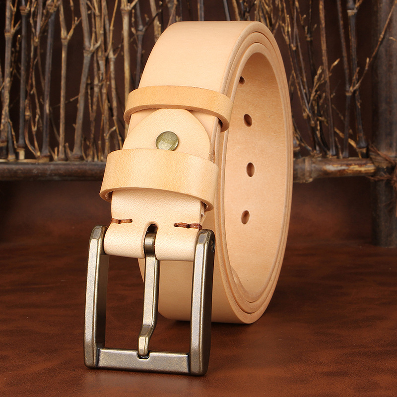Elevate your everyday style with this rugged yet refined 1.5-inch full-grain cowhide leather belt. Crafted from vegetable-tanned leather and finished with a pure brass needle buckle, this belt delivers the perfect balance of durability, comfort, and vintage character. Its thick 3.8 cm (1.5 in) strap offers a substantial feel, while the natural aging of vegetable-tanned leather creates a rich patina that becomes uniquely yours over time.
