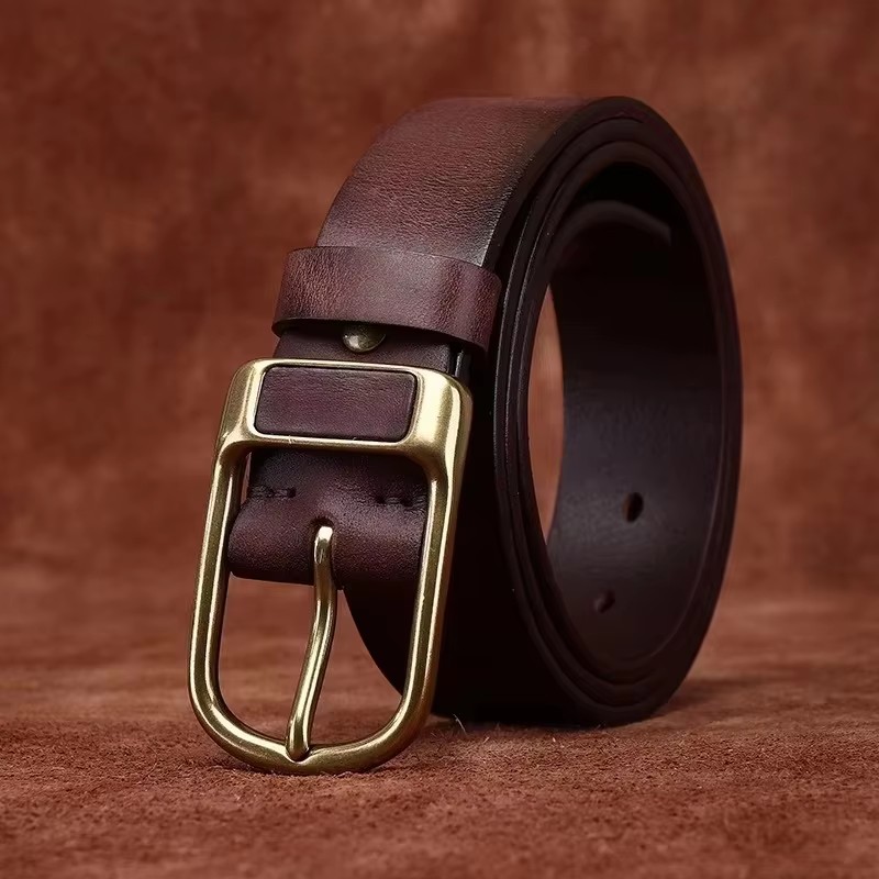 Retro Cowboy Genuine Leather Belt for Men – Vintage Brass Buckle 1.5 inch
