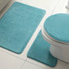 This complete bathroom set includes three essential pieces: a rectangular floor mat, a U-shaped toilet mat, and a toilet lid cover. Each piece is designed to fit standard bathroom sizes and provide full coverage where you need it the most.