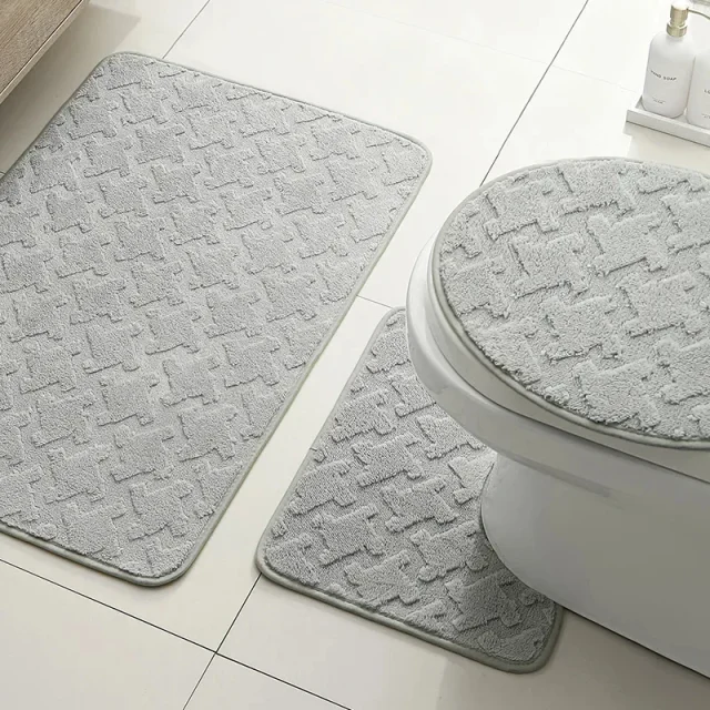 Add a soft, cozy touch to your bathroom with this 3-piece non-slip absorbent bathroom mat set. Designed for everyday comfort and safety, this set includes a rectangular floor mat, a U-shaped toilet rug, and a toilet lid cover. The simple modern look blends beautifully with any décor, while the plush surface gives your feet a warm welcome every time you step out of the shower.
