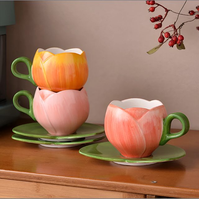More than just a cup, this is a piece of art that turns your everyday drink into a moment of beauty. Whether you’re enjoying a quiet morning or sharing tea with loved ones, the European Ceramic Tulip Coffee Cup & Saucer adds a sense of refinement to your experience. Let your table bloom with elegance—because you deserve to start every day beautifully.