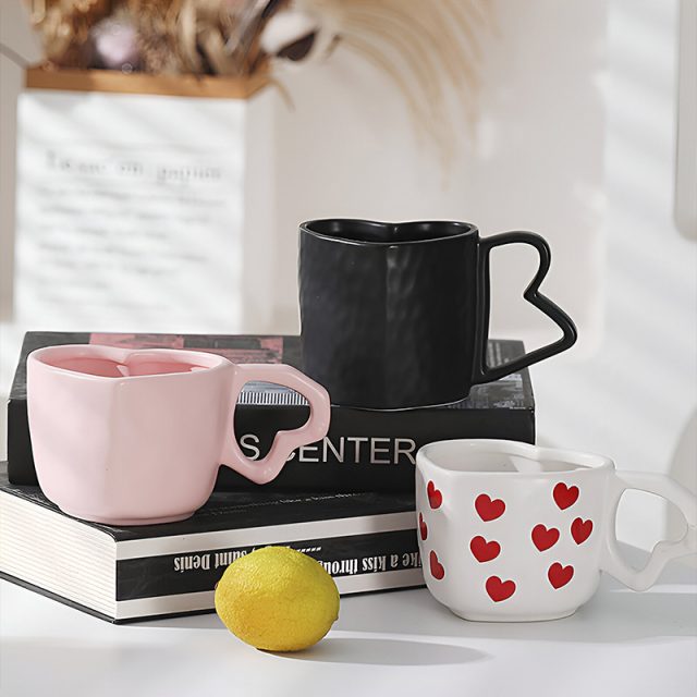 • Heart-shaped ceramic mug with elegant European style