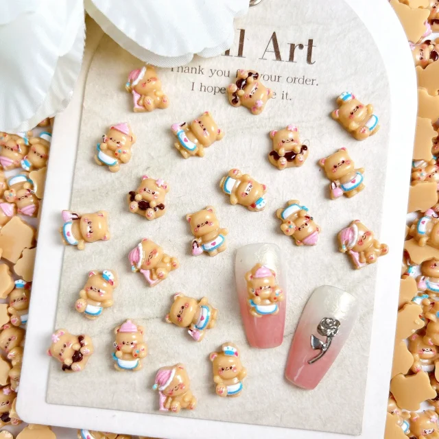 Crafted from high-quality resin, each nail charm features intricate details and a luminous glow, making them perfect for adding a touch of magic to your nails. The charming bear figures come in various cute poses, including chef and painter-themed designs, offering endless possibilities for creative combinations. Their compact size (about 0.31 to 0.51 inches) allows for easy application on both natural and artificial nails, giving you the flexibility to express your style in countless ways.