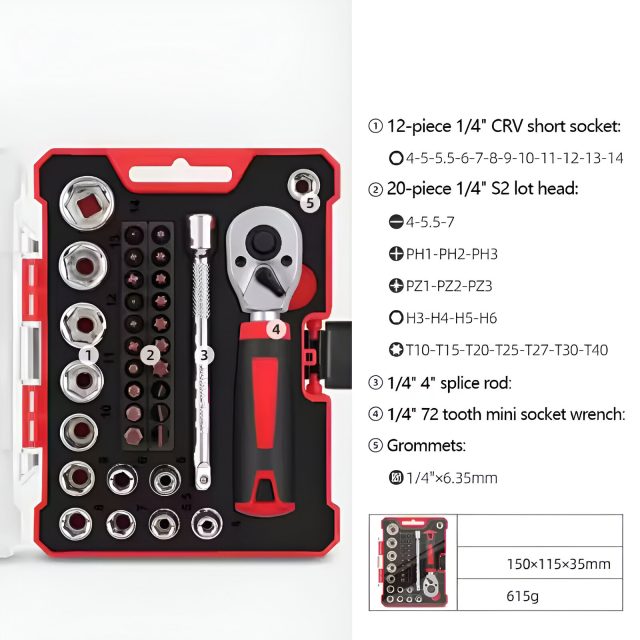 This multi-function set is crafted with high-quality, durable materials, ensuring long-lasting performance. The ratchet screwdriver provides excellent torque and smooth operation, while the wide range of bits and sockets means you’re ready for metalwork, furniture assembly, bike repairs, and more. The compact design keeps all 35 pieces neatly organized, so you’ll always know where your tools are when you need them.