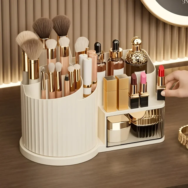 Unlike standard storage boxes, this organizer combines large capacity with a rotating design and added compartments for brushes and small accessories. It doesn’t just store your products—it puts them on display in an elegant, accessible way. That’s what makes it more than just a storage solution—it’s a game-changer for your daily routine.
