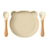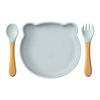 Unlike ordinary plates and utensils, this set combines playful design with practical function. The silicone plate is soft yet sturdy, easy to clean, and perfectly sized at about 7 inches wide to hold just the right amount of food. The natural wooden handles give the spoon and fork a warm, comfortable grip that’s gentle on little hands, while the soft silicone tips protect sensitive gums and new teeth. Every detail is thoughtfully made to support your baby’s self-feeding journey.