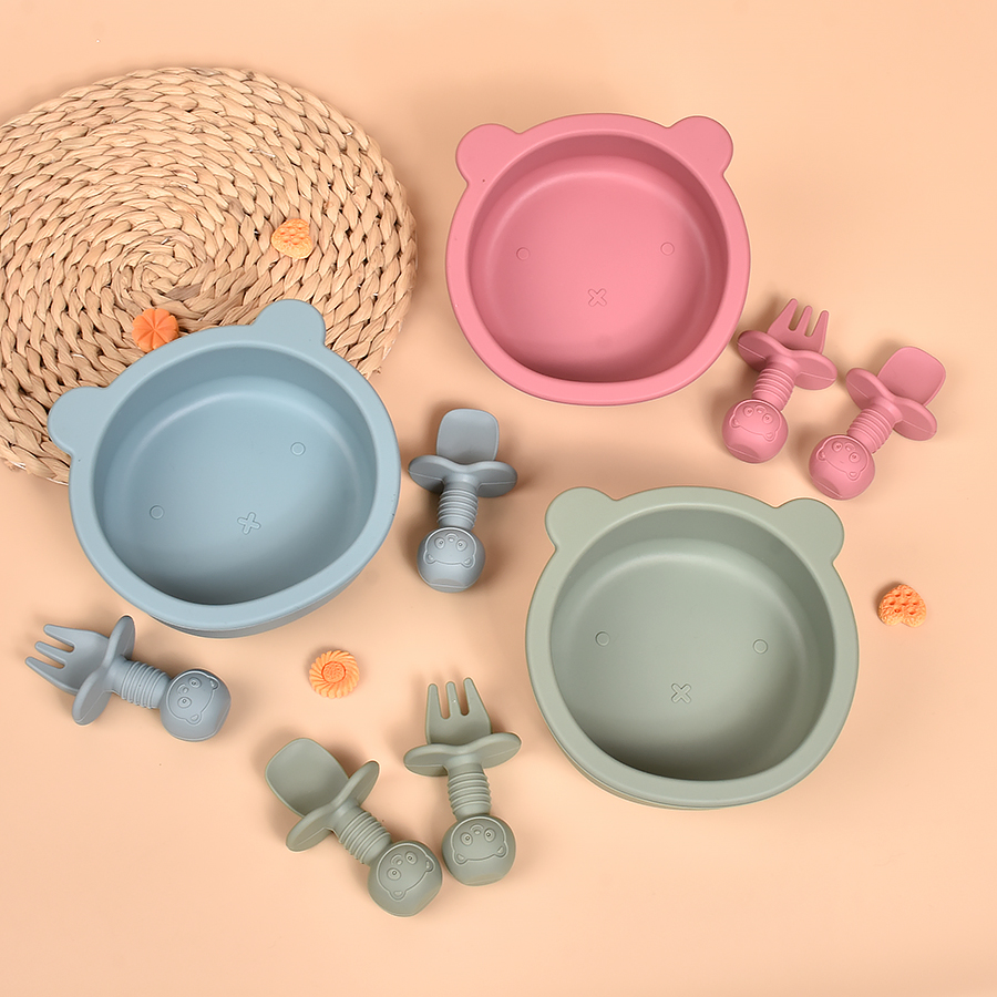 3pcs Baby Silicone Feeding Set with Suction Bowl & Cartoon Design