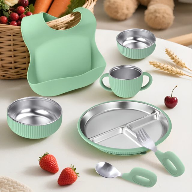 Mealtime with a baby should be joyful, not messy or stressful. This thoughtfully designed baby feeding set helps little ones learn to eat independently while giving parents peace of mind. Made with a durable stainless steel dish and soft, food-grade silicone accessories, this set is perfect for everyday use during your baby’s most important growth stages. The detachable suction base keeps the bowl firmly in place, reducing spills and flipped plates while your child explores new foods.