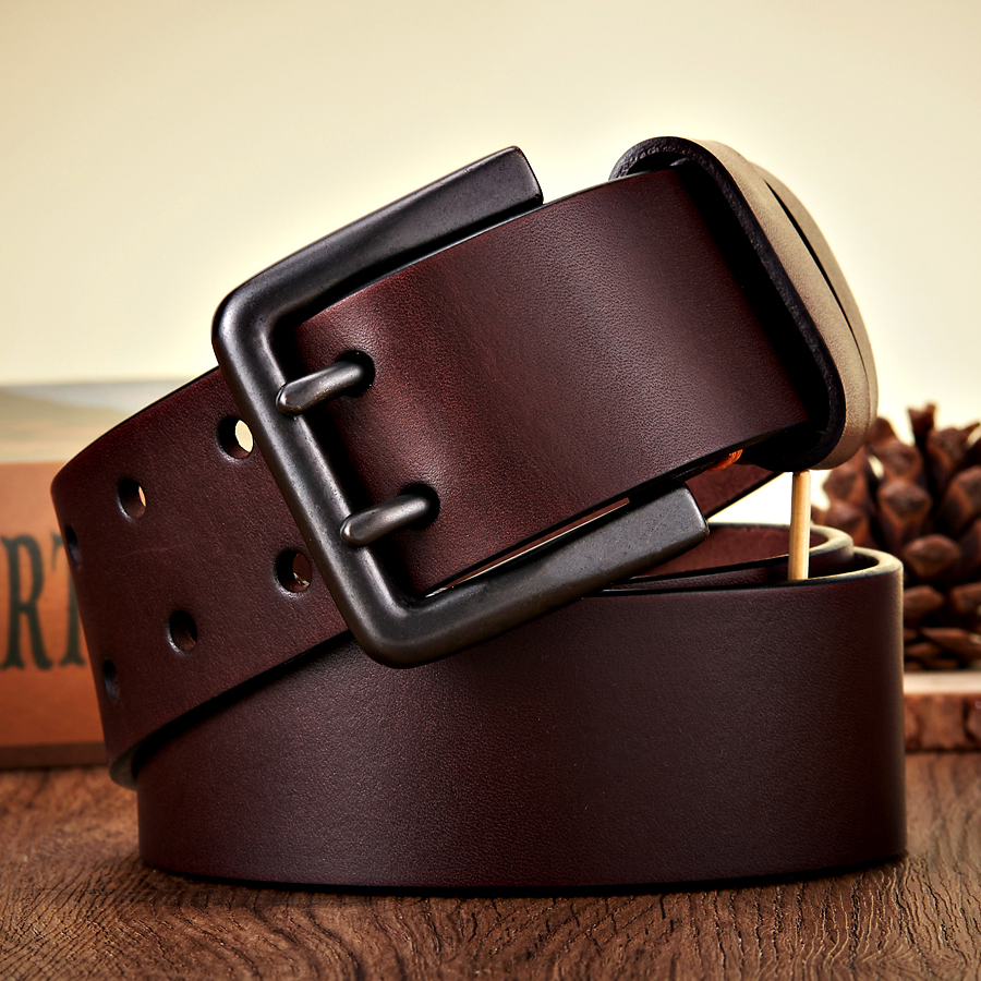 Men’s Genuine Leather Belt with Double Pin Buckle