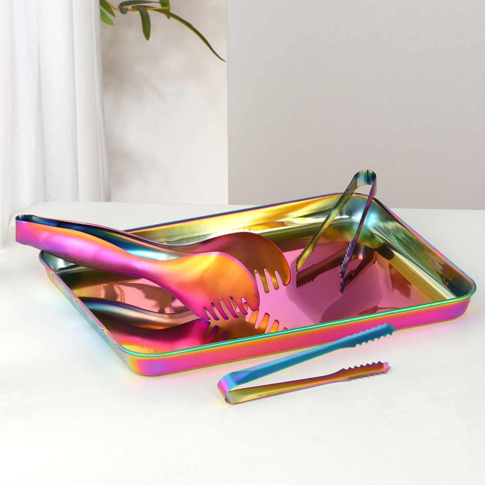 Bring a touch of charm and color to your dining experience with this 6PCS Stainless Steel Mini Serving Set. Designed for both function and beauty, this set includes mini ice clips, bread clamps, and serving trays — all crafted from premium 18/8 food-grade stainless steel. Each piece features a stunning rainbow finish that adds a sophisticated yet playful look to your table setting. Perfect for tea parties, family gatherings, or restaurant service, this set enhances every dining moment with elegance and style.