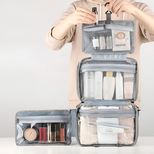 This hanging toiletry bag features multiple sections that open fully, giving you a clear view of all your essentials. Its built-in hook allows you to hang it anywhere—bathroom doors, shower rods, or closet hooks—so you can access your items hands-free. Measuring generously to hold everything from shaving kits and colognes to toothbrushes and grooming tools, it ensures you never leave anything behind.