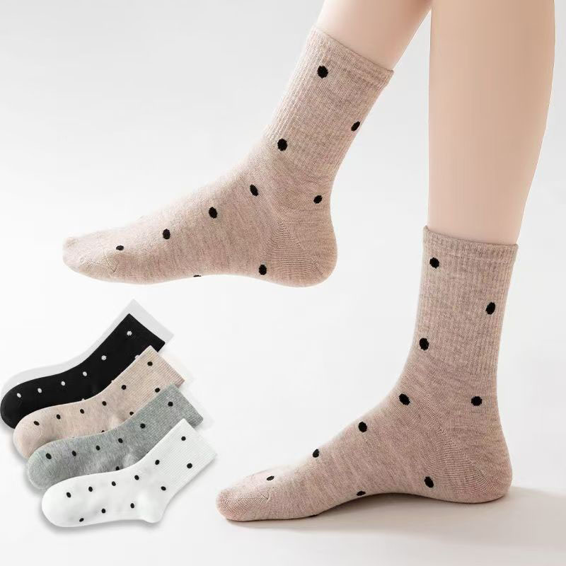 4 Pairs Casual Women’s Mid-Tube Polka Dot & Solid Color Socks for Comfort
