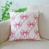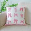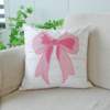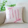 Pink Bow Embroidered Flannel Cushion Cover 18x18in Soft Decorative Pillowcase