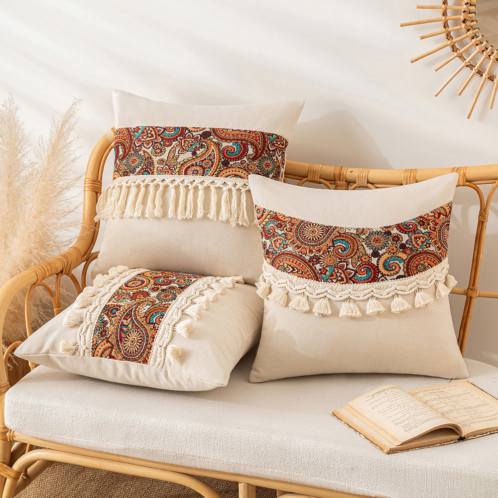 Unlike ordinary pillow covers, this one combines detailed craftsmanship with artistic flair. The spliced stamping and tatting technique give it depth and texture, while the tassels add movement and a handmade touch. It’s not just a pillow cover—it’s a mini piece of art that invites comfort and compliments.