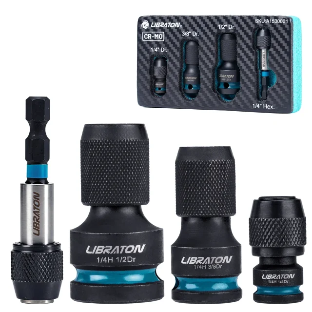 Upgrade the way you work with this versatile 4-piece impact hex converter set. Designed for power, speed, and flexibility, these adapters let you transform impact wrenches, ratchets, and drills into reliable 1/4″ hex bit drivers in seconds. Whether you’re tightening fasteners, assembling furniture, or handling heavy-duty repairs, this set helps you get more done with fewer tools.