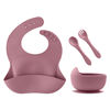 4Pcs Baby Silicone Feeding Set with Suction Bowl, Spoon, Fork, Plate, and Bib