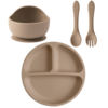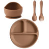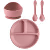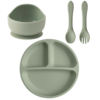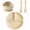From first tastes to independent bites, this feeding set is best used during weaning and toddler training. The strong suction base keeps bowls and plates firmly in place, preventing spills and messes. The soft spoon and fork are gentle on sensitive gums while encouraging your child’s hand-to-mouth coordination. With its durable, chemical-free silicone, you can trust this set to be safe, long-lasting, and easy to clean.