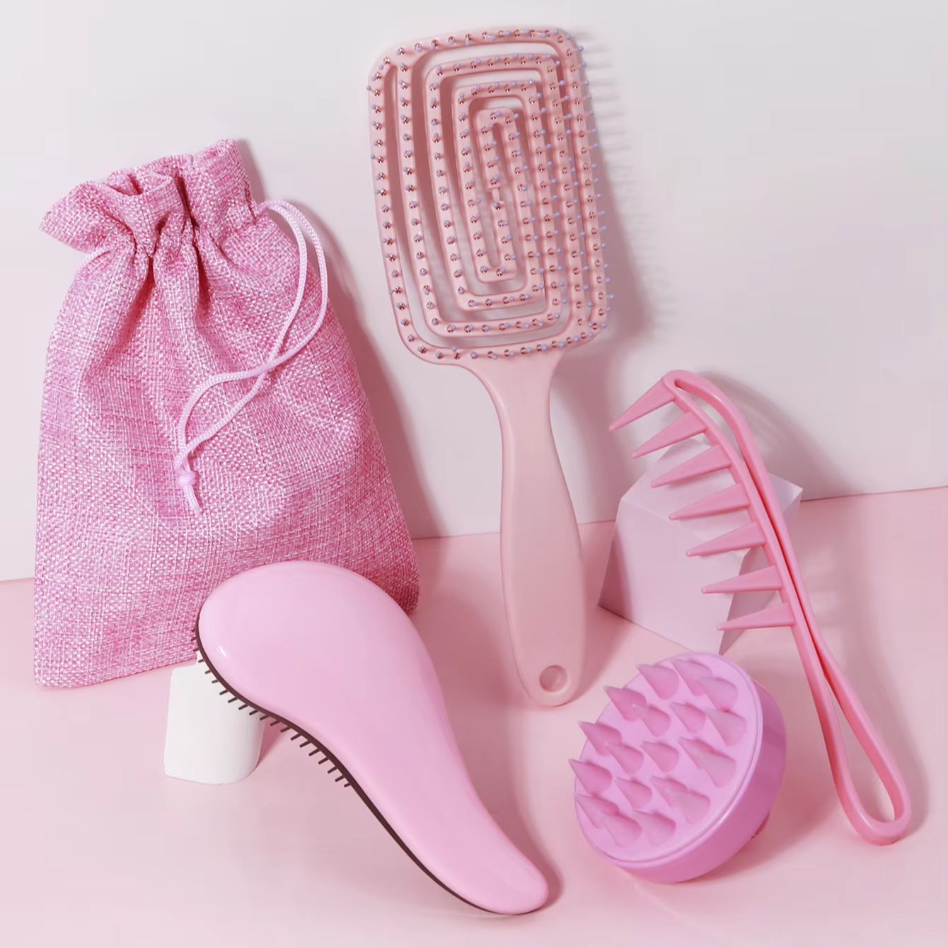 Each tool is crafted from smooth, durable plastic and soft polyester for a comfortable feel against your hair and scalp. The detangling comb glides through strands without pulling, making it ideal for wet or dry hair. The massage brush and scalp massager help improve circulation and create a spa-like experience right at home. Because the set is unisex and designed for adults, it suits anyone who wants easier styling, healthier-feeling hair, and a calming self-care moment.
