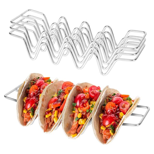 Make every taco night feel like a fiesta with this 4PCS Stainless Steel Taco Holder Stand Set. Designed with a sleek wave shape and a convenient sauce cup, this kitchen essential keeps your tacos, tortillas, or even pancakes upright, neat, and ready to serve. Whether you’re hosting a party, cooking for family, or simply treating yourself on Taco Tuesday, these taco racks turn every meal into a delightful experience.