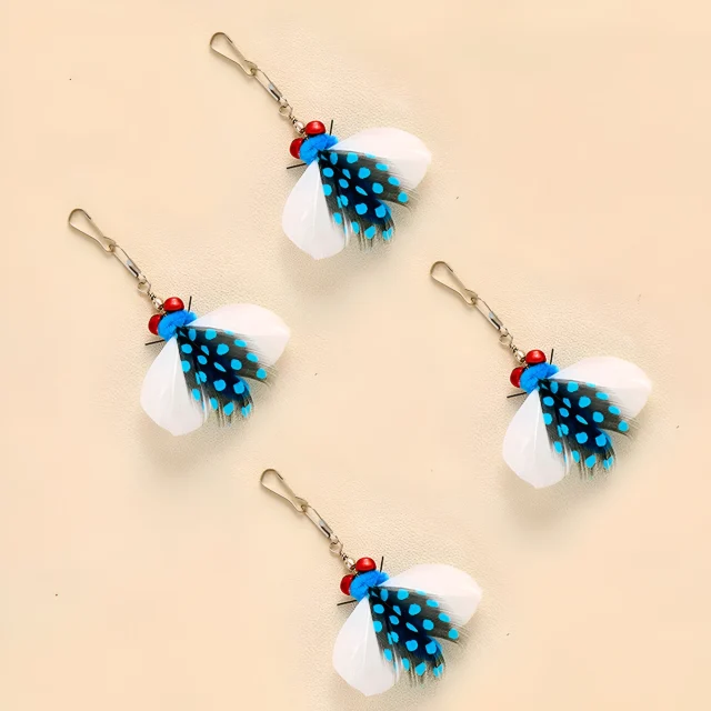 Treat your feline to endless fun with this set of 4 feather insect-shaped teaser attachments. Designed to mimic the flutter, color, and movement of real prey, these playful toppers instantly turn any compatible cat wand into your pet’s favorite adventure. Each piece features soft feathers, durable materials, and bright colors—Blue, Green, Purple, and Black—that catch your cat’s eye and spark curiosity. Measuring about 4.3 x 3 inches, they’re the perfect size to trigger that satisfying pounce.
