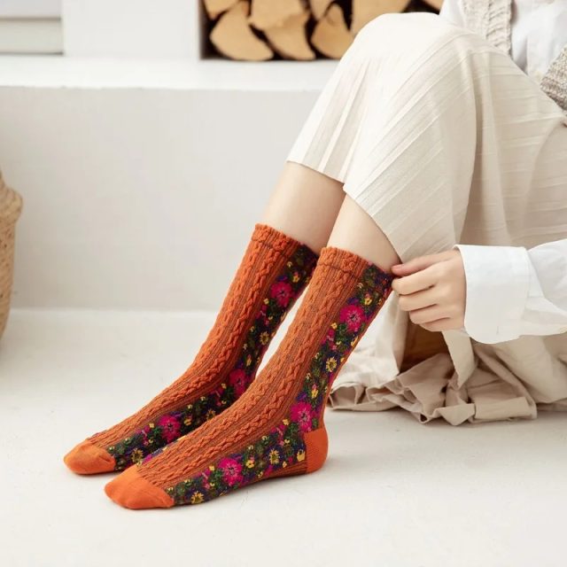 These socks are not just about comfort – they’re about style and versatility. Whether you’re looking to refresh your spring wardrobe, or simply want a cozy, chic option for daily wear, these socks have you covered. The retro floral print gives your outfits a vibrant, playful touch that can be easily paired with various casual outfits. They are perfect for wearing during any casual occasion or lounging at home in comfort.