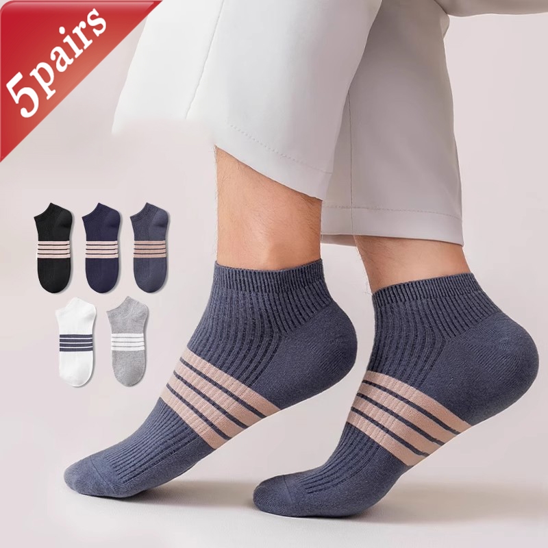 5 Pairs of Men’s Thin Striped Boat Socks – Breathable, Sweat-Absorbing, and Anti-Foot Odor Sports Socks