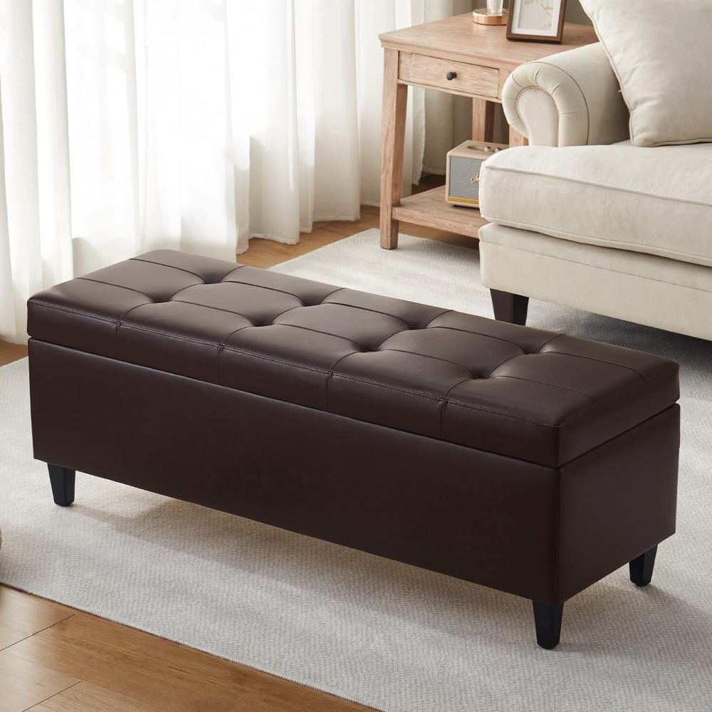 Imagine beautiful furniture that secretly solves your storage problems. This 50.5-inch storage ottoman bench combines luxurious faux leather with incredible practicality to create your new favorite multi-purpose piece. Whether you need extra seating, a comfortable footrest, or hidden storage for all those items that clutter your space, this bench delivers both style and function in one elegant package.