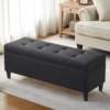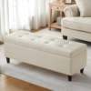 The standout feature is its massive 47-inch interior storage space combined with premium faux leather durability. While the tufted upholstery and elegant design create a sophisticated look, the spacious interior can swallow up blankets, pillows, seasonal items, and everyday clutter with ease. The waterproof faux leather resists stains and wear, making it perfect for busy households, while the safety hinges prevent accidental slams—a thoughtful touch that shows this bench was designed with real life in mind.
