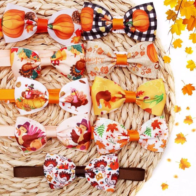 As the leaves begin to turn and the air cools, it’s the perfect time to celebrate the cozy season with your furry friend. The 50PCS Fall Thanksgiving Dog Bow Ties offer a delightful touch of autumn charm for your pet’s wardrobe. These vibrant, autumn-inspired bow ties are designed to make your dog or cat the center of attention at every gathering, whether it’s a Thanksgiving feast or a casual fall stroll in the park.