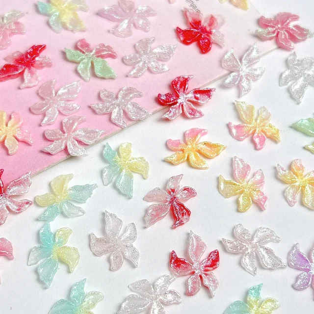 Crafted from high-quality resin, these charming flowers are durable, lightweight, and easy to apply. With a variety of dreamy colors like purple, pink, blue, white, and beige, you can mix and match to suit your style. These 3D blossoms are designed to capture the light, creating a glowing effect that is simply mesmerizing. Ideal for both beginners and professionals, these charming nail accessories will help you create dazzling, long-lasting designs.
