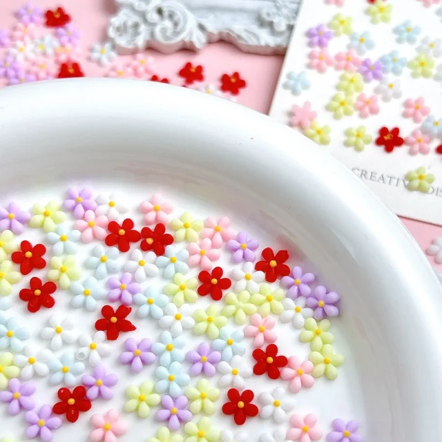 These resin nail charms are a must-have for anyone who enjoys personalizing their nails with a sweet and minimalist touch. Their five-petal flower design is simple yet stylish, making them perfect for both casual and more formal looks. Whether you’re doing a soft pastel manicure or a bold and vibrant design, these colorful blossoms will elevate your nail art to the next level.