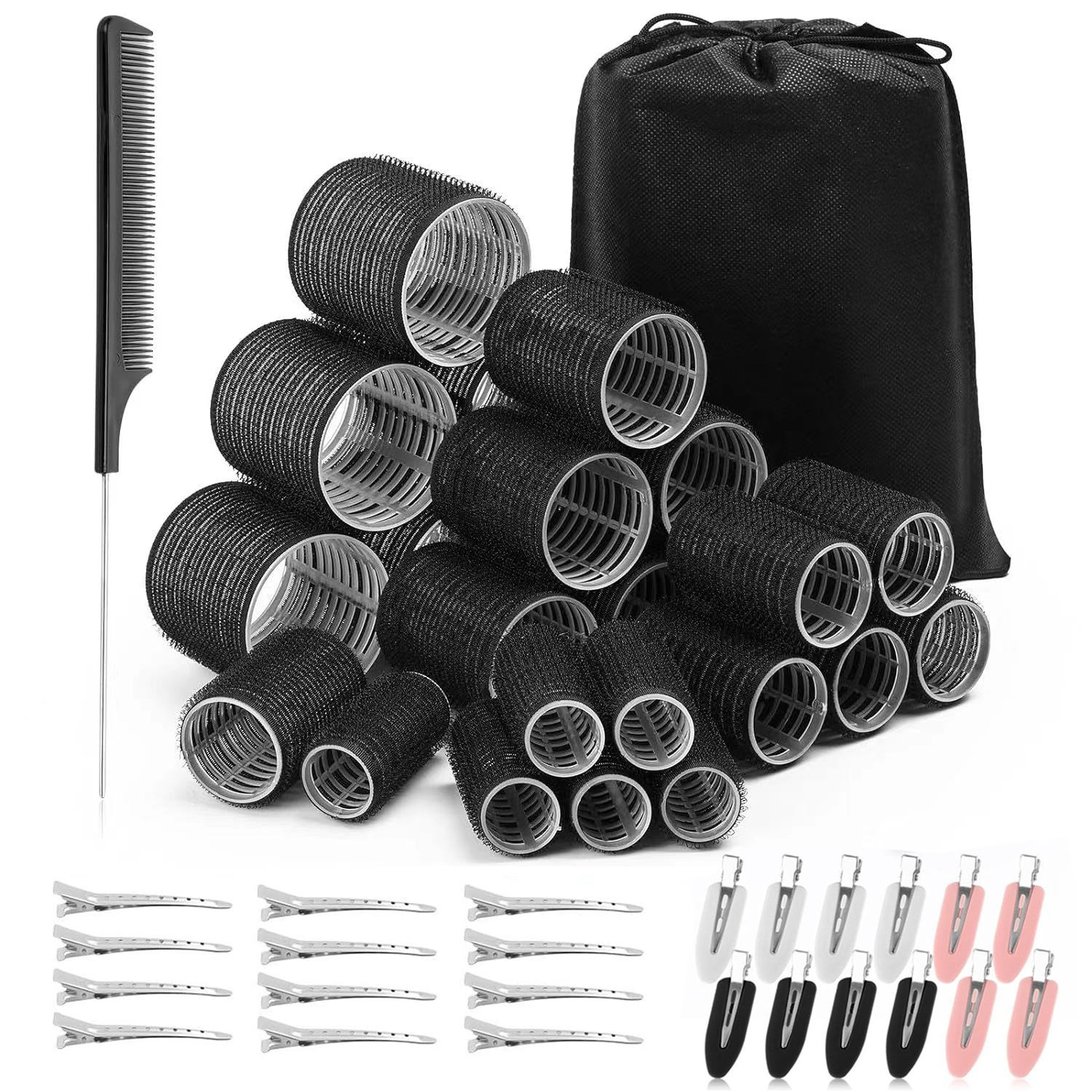 • All-in-one styling kit: Includes 24 rollers, 24 clips, a styling comb, and a storage bag.