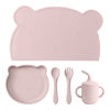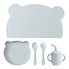 Each piece is made from food-grade silicone that is BPA-free, PVC-free, latex-free, and phthalate-free, offering trusted safety for babies from 0–6 years. The waterproof placemat keeps surfaces clean, while the strong suction dish stays put to help prevent spills. The soft spoon and fork are gentle on growing gums, and the sippy cup encourages independent drinking. Simple solid colors make the set look modern and clean in any kitchen.