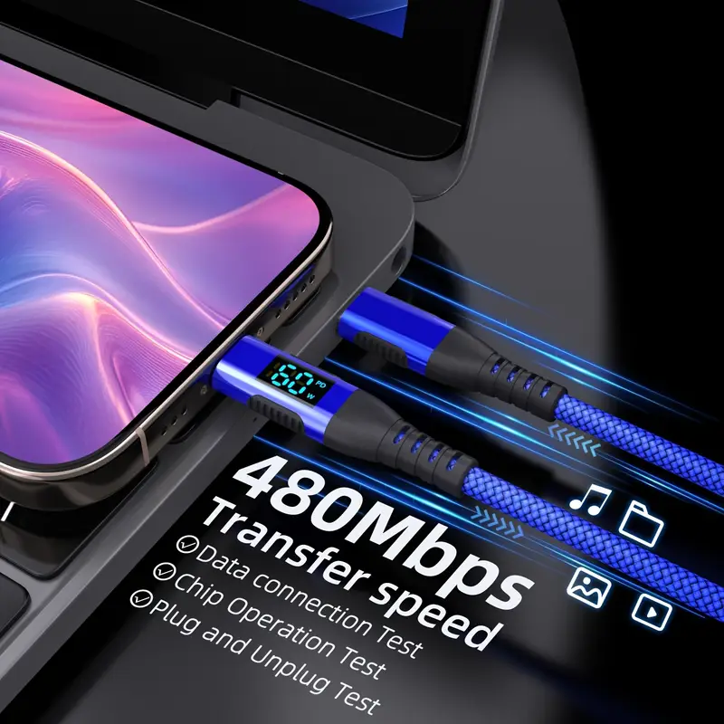 These cables are packed with essential features you can count on. They support up to 60W fast charging, making them perfect for powering USB-C phones and tablets, including devices like iPad series and Samsung Galaxy. The thick nylon braid resists tangling, bending, and daily wear, while reinforced connectors ensure stable performance over time. The smart display adds a modern touch, allowing you to see charging speed at a glance.