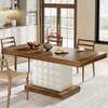 Constructed from high-quality engineered wood (MDF), this dining table is designed to provide reliable support and lasting durability. The sturdy pedestal base not only offers strong structural balance but also adds a distinctive architectural flair to your dining room. Measuring 63″ W x 31.5″ D, it comfortably seats 4 to 6 people, giving everyone ample space to enjoy their meal without feeling crowded.