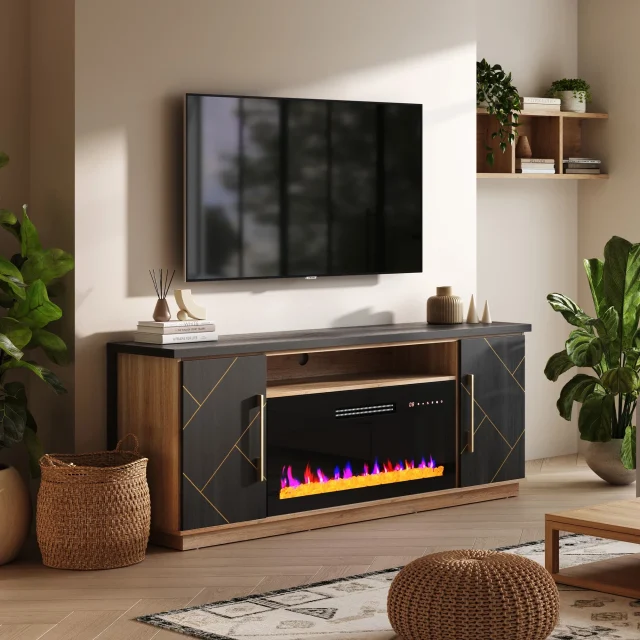 Transform your living room into a cozy and stylish retreat with this 68-inch Fireplace TV Stand. Designed for TVs up to 75 inches, this entertainment center perfectly blends modern sophistication with everyday functionality. Its built-in 36-inch electric fireplace adds warmth and ambiance at the touch of a button, creating the ideal spot for relaxing evenings, entertaining guests, or family movie nights.
