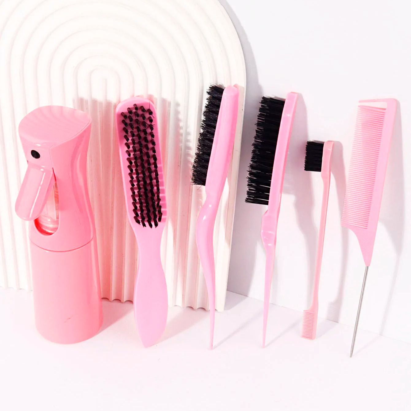 What makes this set truly special is its combination of practicality and creativity. Each tool helps you achieve smooth, polished results—whether you’re detangling, shaping, or refreshing your look. The spray bottle adds just the right amount of moisture, the diagonal brush glides through strands effortlessly, and the straight back comb helps you create clean, precise parts.